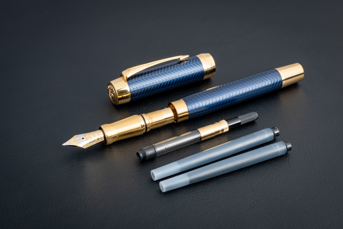 Перьевая ручка Parker Duofold Prestige Centennial Blue Chevron GT (M) от официального дилера Parker в Керчи. Вы можете дополнительно заказать гравировку, которая подчеркнет Вашу оригинальность и придаст памятность статусному подарку. Все ручки Паркер поставляются в фирменном футляре.