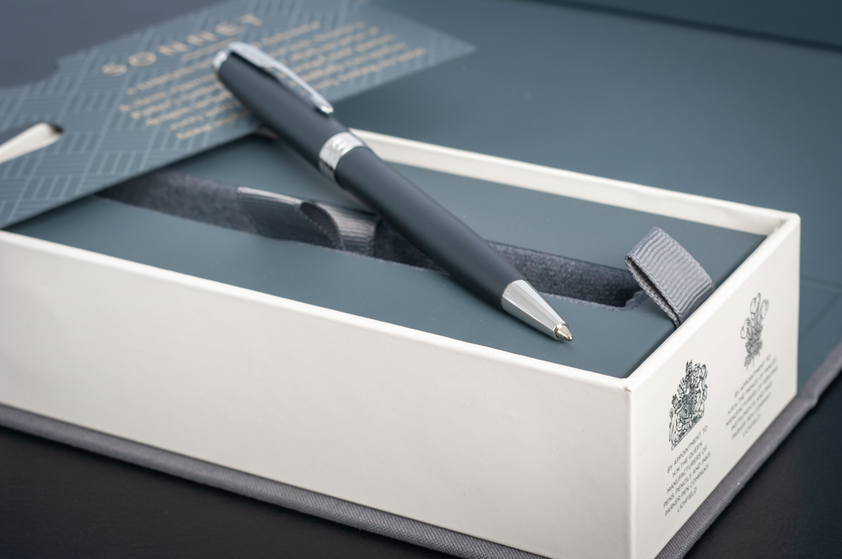 Шариковая ручка Parker Sonnet Matte Black CT от официального дилера Parker в Керчи. Вы можете дополнительно заказать гравировку, которая подчеркнет Вашу оригинальность и придаст памятность статусному подарку. Все ручки Паркер поставляются в фирменном футляре.